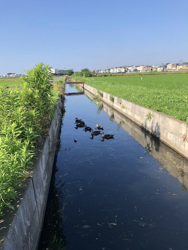早朝の目久尻川沿いを歩けば、畑仕事をする方や犬の散歩をする方に出会え、温かな生活の時間が流れていることに気づきます。